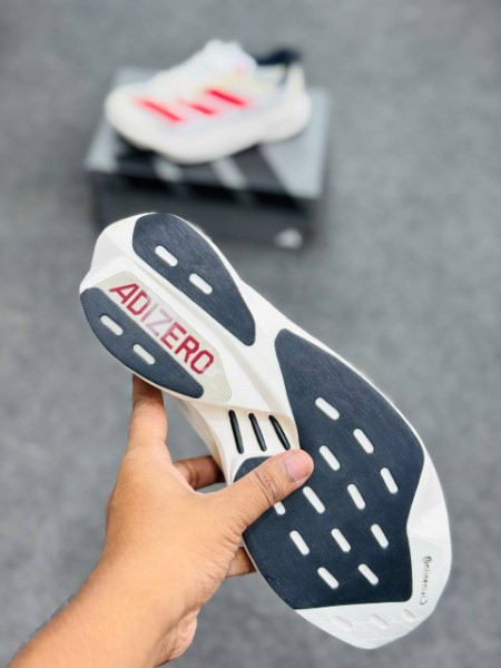 The Adizero Adios Pro 3 is the pinnacle of Adizero Racing products. It was built with and for athletes to achieve unbelievable feats. These adidas running shoes are made to optimize running efficiency. Our carbon-infused ENERGYRODS 2.0 provide lightweight stiffness for a snappy, efficient stride. Ultralight LIGHTSTRIKE PRO cushions every step with two layers of our most resilient foam to help you maintain energy over the long term. It all rides on a thin layer of textile rubber outsole for extraordinary traction in wet and dry conditions.