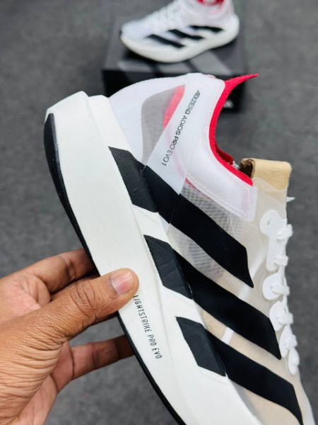 SET THE PACE Blink and you’ll miss them. The first-of-its-kind forefoot rocker triggers forward momentum, resulting in record-breaking speed that improves the wearer's running economy. TREAD LIGHTLY Lightweight and as soft as ever, the latest version of the LIGHTSTRIKE PRO foam significantly reduces the weight of the shoe while providing greater energy return for runners.