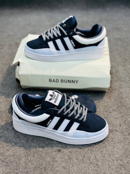 Details. Simple yet timeless, the adidas Originals Bad Bunny Campus fuses nostalgia and modern style for versatile, everyday wear. Featuring a double-tongue and double-heel construction, these sneakers bring back the iconic Campus silhouette with a twist.