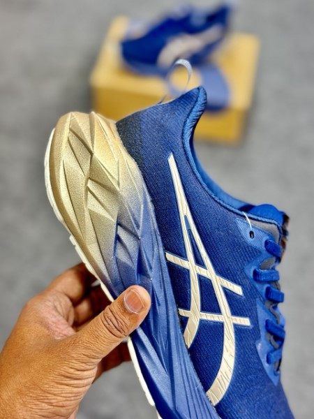 The NOVABLAST 4 PLATINUM running shoe features midsole and outsole geometry that helps produce an energized ride.
