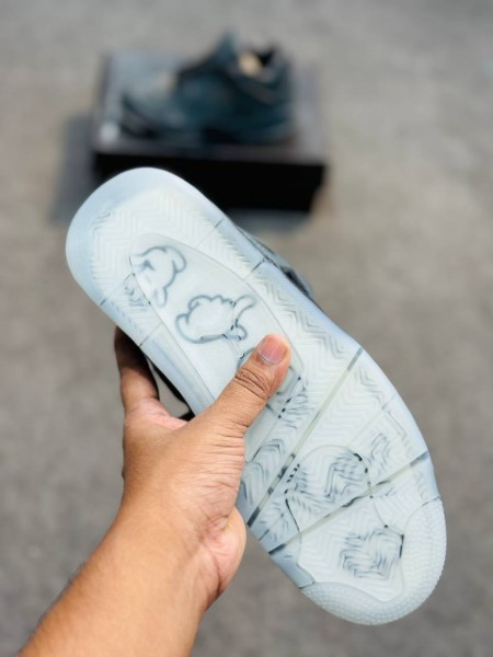 Succeeding Air Jordan's debut collaboration with the renowned Brooklyn artist on the Grey Air Jordan 4, released in November 2017 the Air Jordan 4 Retro Black x KAWS sports an all suede upper, featuring a subtle tonal print depicting the cartoon hands of KAWS’ famous Companion figure. The artist’s signature ‘XX,’ also juxtaposed above Nike’s ‘AIR’ trademark, and are inscribed on the heels to create a fusion style to this triple black kick. This shoe is another great collaboration that Nike has been able to secure and continues to show that no boundary can't be pushed and no ceiling too high for the brand.