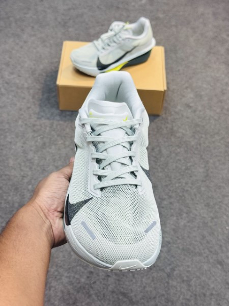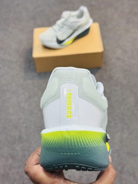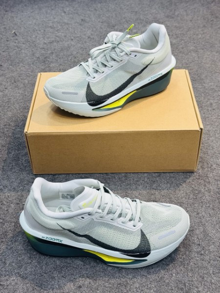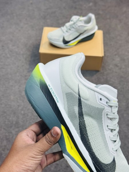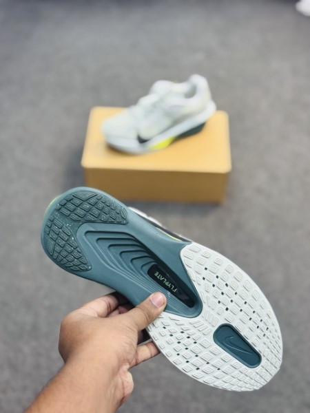 The Nike Zoom Fly 6 is now designed with two foams, a top layer of ZoomX and a bottom layer of SR-02, with a carbon fiber plate sandwiched between the two. It's got a big ol' stack of foam (42mm / 34mm) — more than any other shoe in the Nike racing lineup — and comes with a two-layer woven mesh upper.