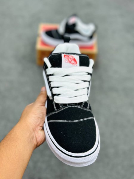 The Knu Skool is a modern interpretation of a classic 90s style, defined by its puffed up tongue and 3D-molded Sidestripe™, and tied off with oversized, chunky laces. With its in-your-face profile and dramatic style details, the Knu Skool plays off of the original Old Skool™ while blending an icon of the past with today’s trends.
